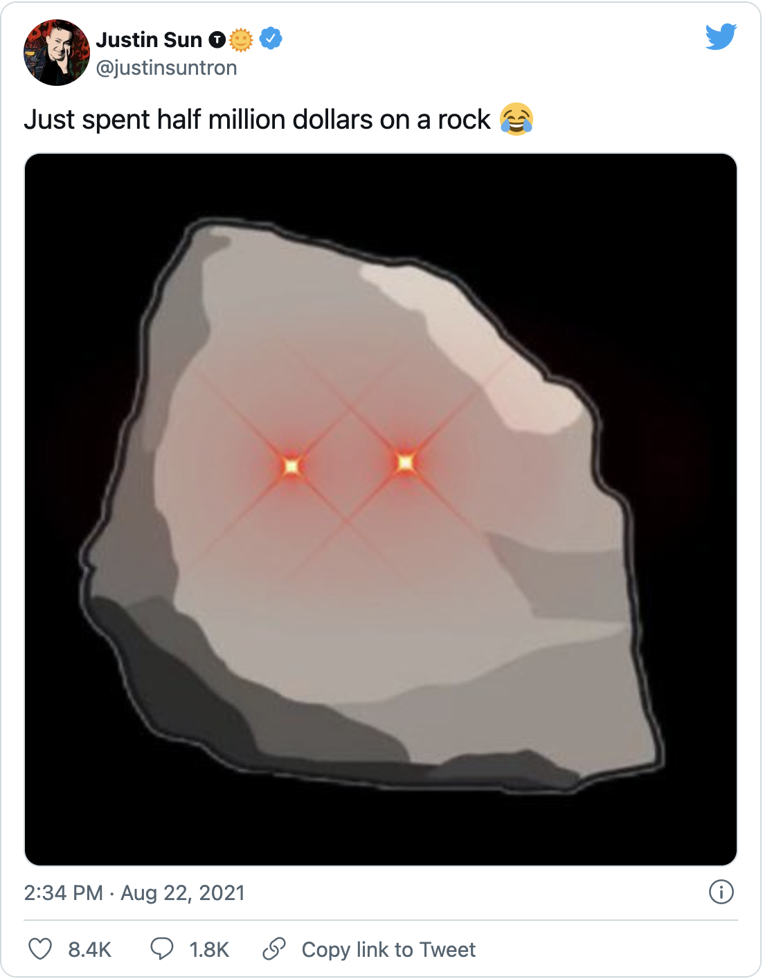 A non-fungible item is something that is one-of-a-kind... is unique. For example, a simple toothbrush is fungible but if you take a picture of it (thereby convert it into a digital asset) and mint it, it becomes an NFTs. Don't take my word for it. "Somebody just paid 1.3 for a picture of a rock" -- CNBC headline.