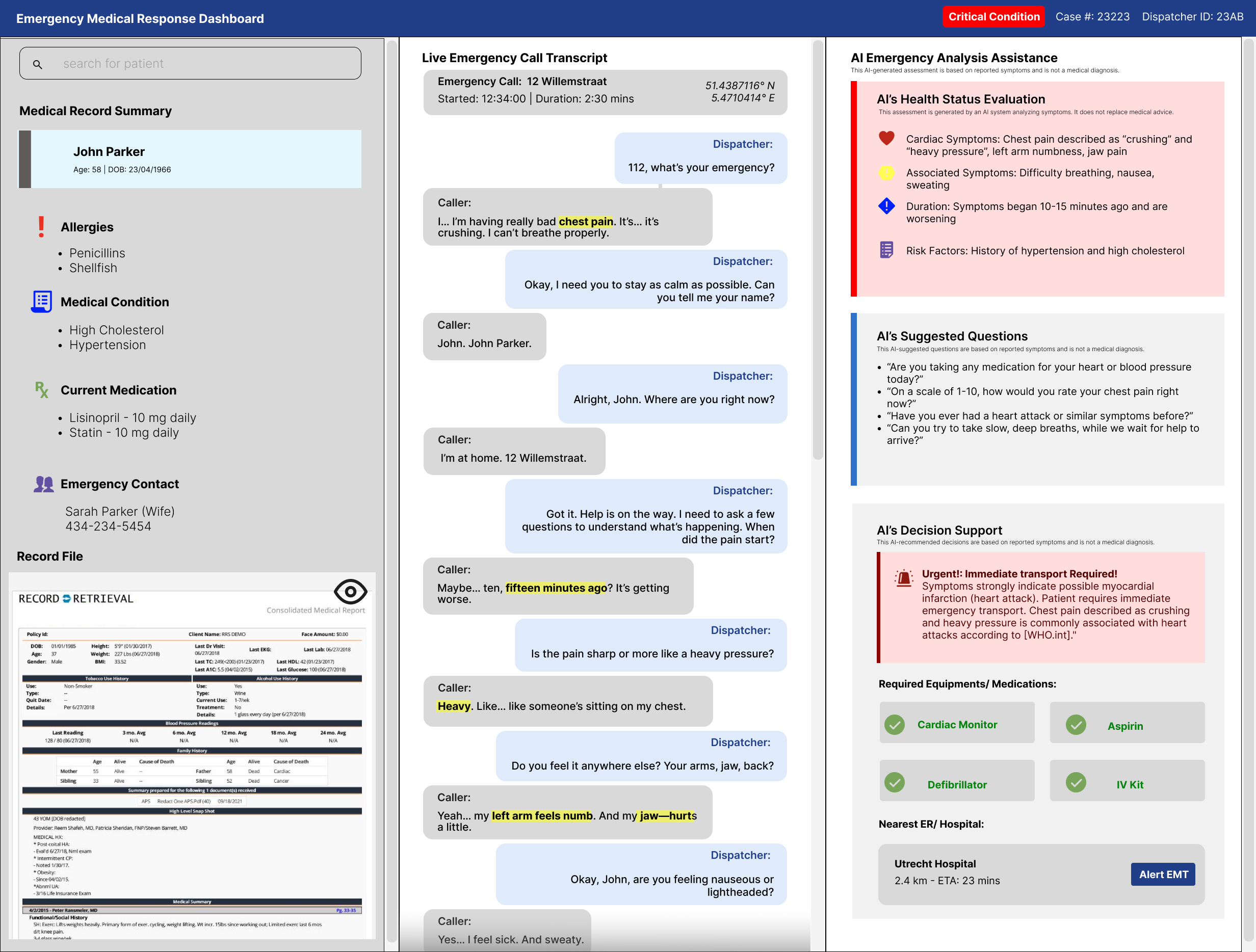 Emergency dispatch centers and ER support teams face increasing call volumes, inconsistent information quality, and limited capacity to prioritize cases effectively under time pressure. This results in delayed responses for critical cases and inefficient use of human resources.Nonprofit, Culture, Community
