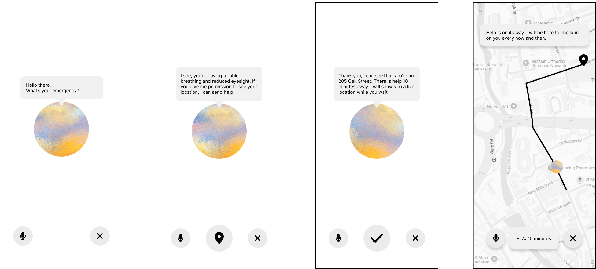 - Live voice transcription capturing caller input in real time, enabling accessible and hands-free interaction during emergency situations.