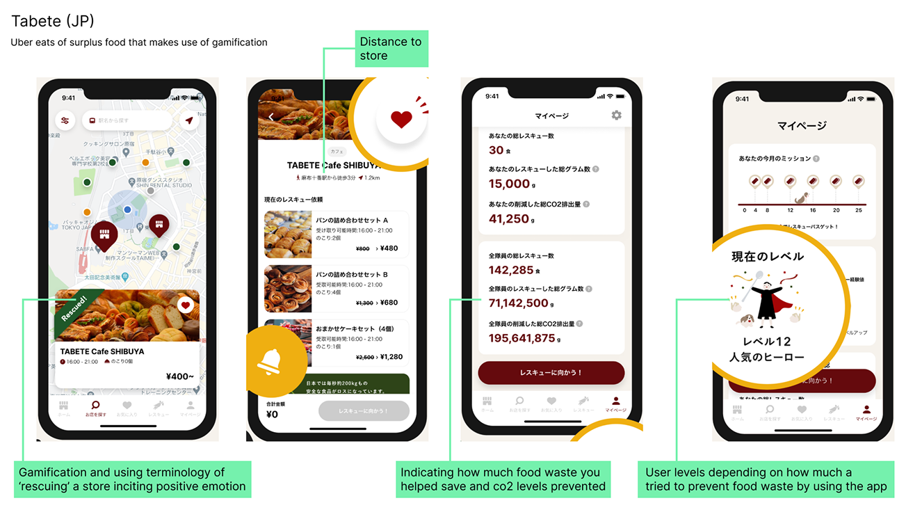 Tabete approaches food waste reduction through gamification, encouraging users to log their behavior and earn progress through levels and rewards. This strategy aims to motivate users emotionally and build awareness over time. While effective for engagement, it relies heavily on sustained user input and motivation, which can limit adoption. In contrast, WasteNot positions itself between these approaches by combining the clarity and immediacy of surplus marketplaces with AI-supported, low-effort interventions that help users make better decisions without requiring ongoing manual tracking.